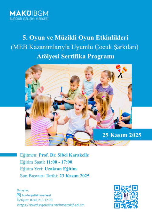 5.Oyun ve Müzikli Oyun Etkinlikleri (MEB Kazanımlarıyla Uyumlu Çocuk Şarkıları) Atölyesi Sertifika Programı
